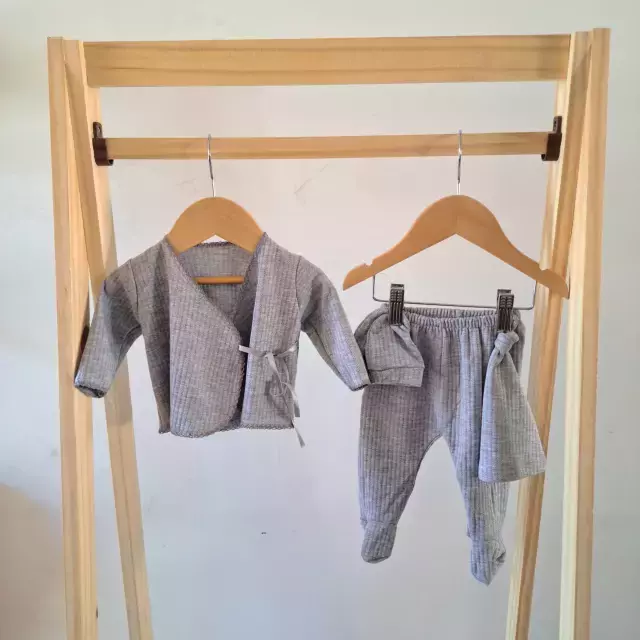 Este ajuar es la elección ideal ofrecer a las familias que buscan calidad y estilo para sus bebes. Confeccionado en suave algodón desagujado con terminacion picot, garantiza la máxima comodidad para los más pequeños.Este ajuar incluye batita cruzada/ ranita / gorrito / manoplas.