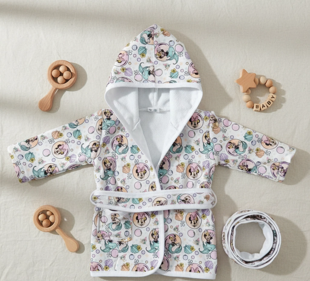 ¡La elección ideal para tu pequeña post baño , playa o día de pile. Confeccionada en material toalla microfibra de alta calidad, estas batas son perfectas para esta nueva temporada. Diseño estampado.