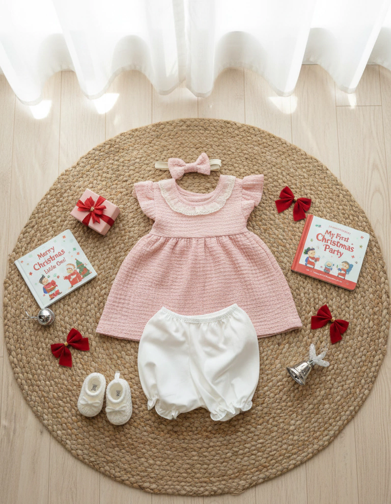 El Conjunto ideal para tu pequeña con estilo y comodidad! Con un diseño de volado y broderie súper delicado. Perfecto para una ocasión especial. Incluye 3 piezas. Confeccionado en material creep.