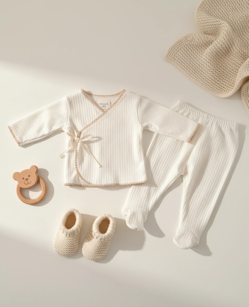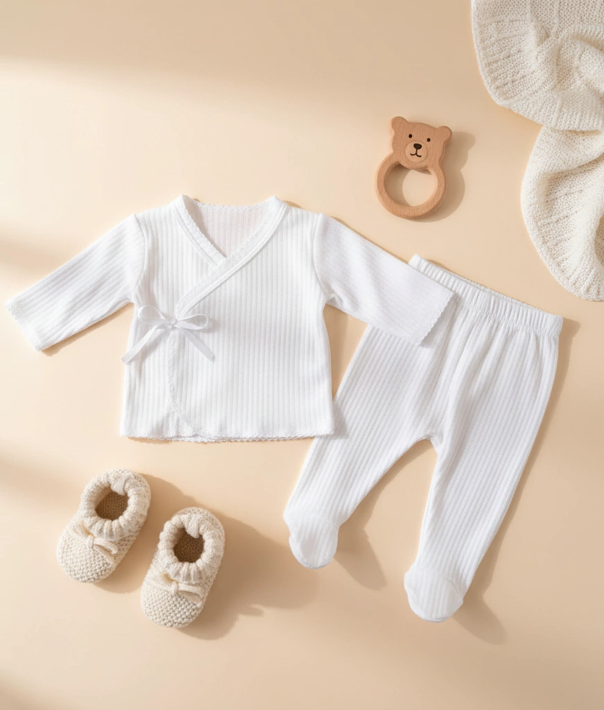 Este ajuar es la elección ideal ofrecer a las familias que buscan calidad y estilo para sus bebes. Confeccionado en suave algodón desagujado con terminacion picot, garantiza la máxima comodidad para los más pequeños.Este ajuar incluye batita cruzada/ ranita / gorrito / manoplas.