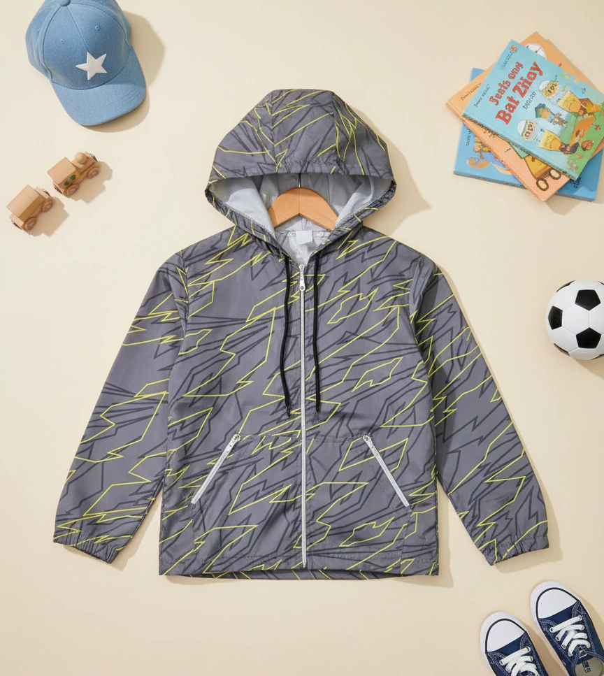 Esta campera es la opción ideal para los más pequeños que quieren estar cómodos y protegidos en cualquier época del año. Confeccionada en un material liviano e impermeable, diseño con estampados surtidos .